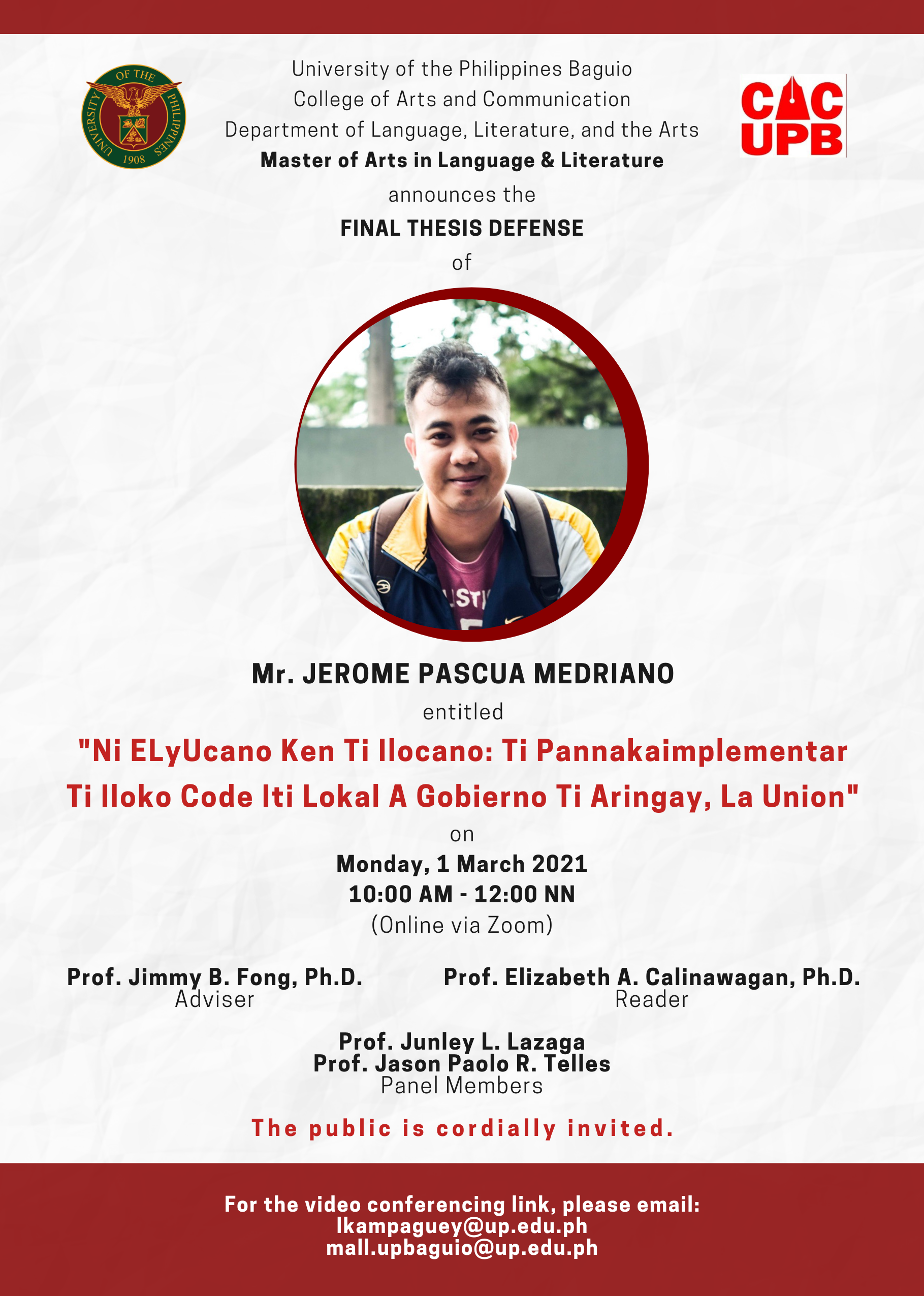 Thesis Defense, Jerome P. Medriano (MALL) - March 1, 2021