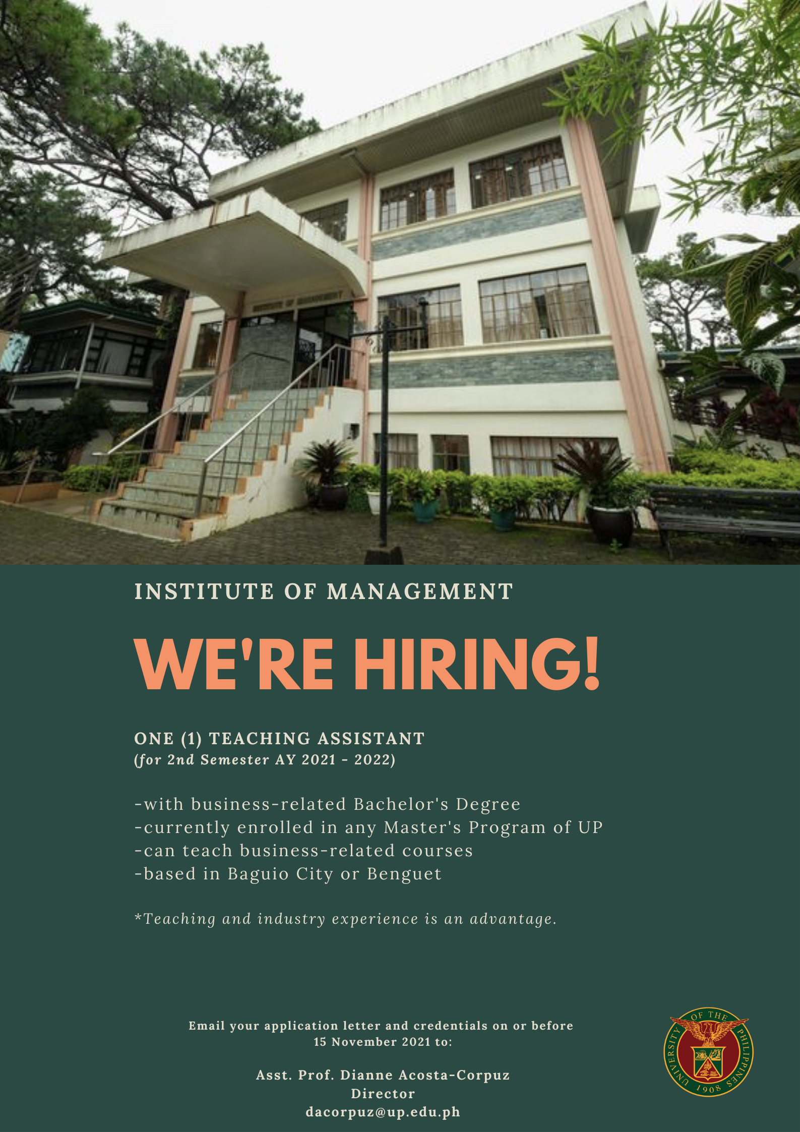 HIRING: One (1) Teaching Assistant for the Institute of Management